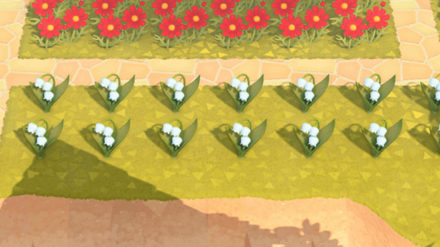 Lilies of the Valley known as Jacobs Ladders prior to Happy Home Designer are a type of flower in the Animal Crossing series that first appeared in Doubutsu no Mori e. Cosmos are a common flower.